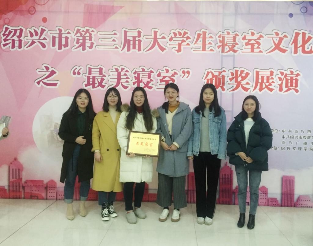 12�24日晚,由市委宣传部、市教育局、市广电总台主办,绍兴文理学院元培学院承办的绍兴市第三届大学生寝室文化节之“最美寝室”颁奖展演在绍兴市文化中心隆重举行。我院学�3�317寝室(化�151班,成员:林雨怡、卢晓涵、裘颖楠、沈力、王炜月、魏迎曦)获“最美寝室”称号,3�517寝室(药�152班,成员:施亚茹、苏婉婷、夏伟琪、魏艺璇、童洁、徐航莹)荣获“最美寝室”提名奖�